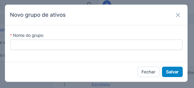 Clique em “Novo grupo de ativos” para criar uma nova categorização.