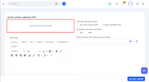 Na tela de upload, clique na caixa de seleção ou arraste o arquivo até a área delimitada em azul.