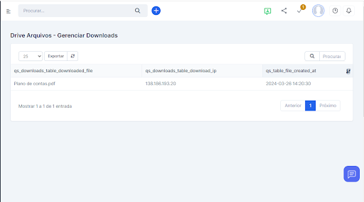 Para visualizar todos os downloads dos arquivos, navegue até a página de “Gerenciar Downloads” na seção de “Drive de Arquivos”.