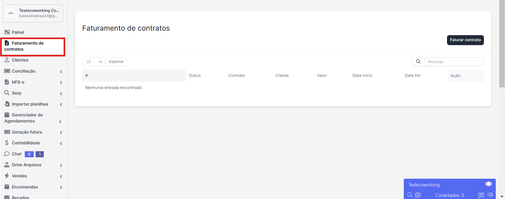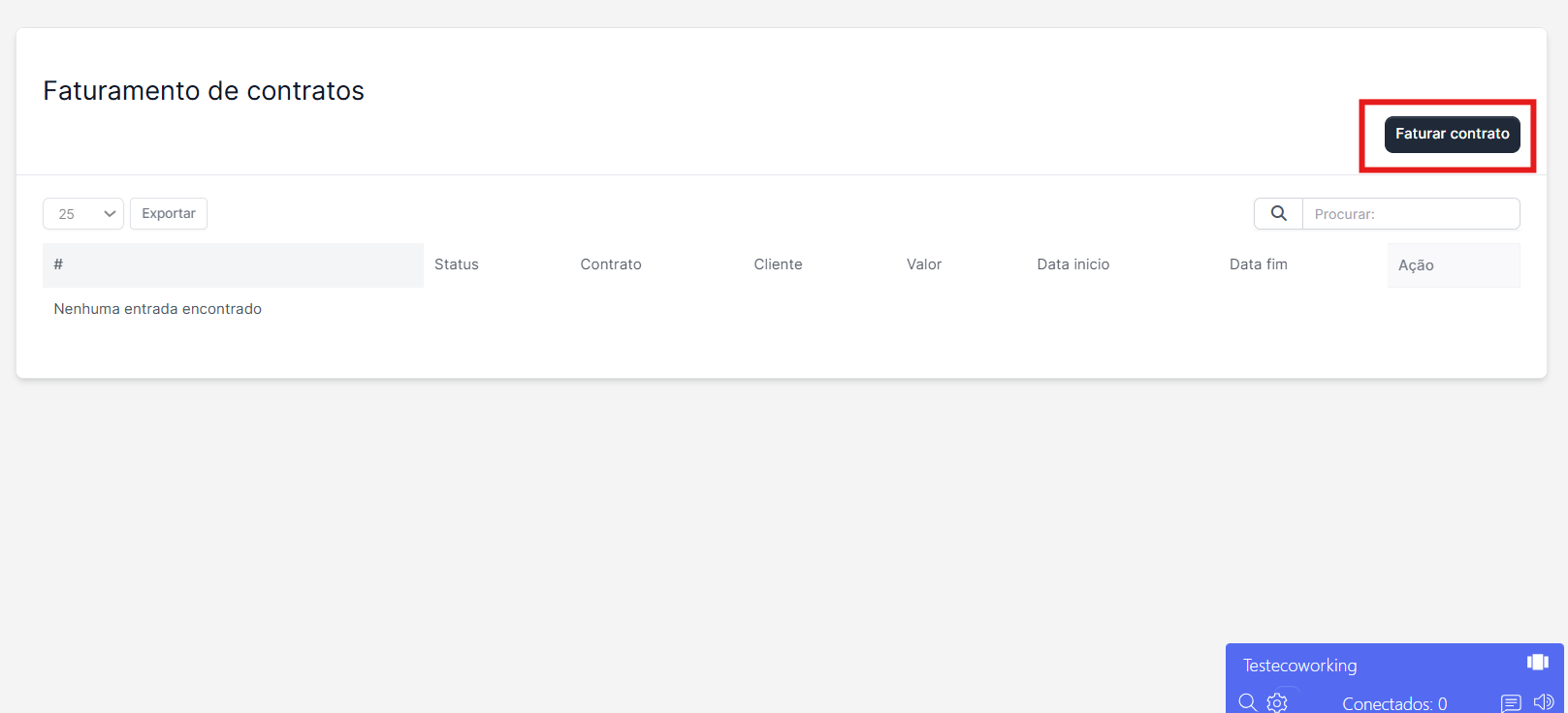 Ao clicar em "Faturar Contrato", você poderá vincular a fatura ao contrato.