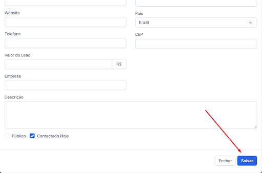 Preencha os detalhes do lead, incluindo nome, contato, empresa e informações relevantes.