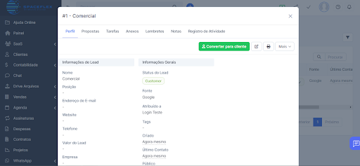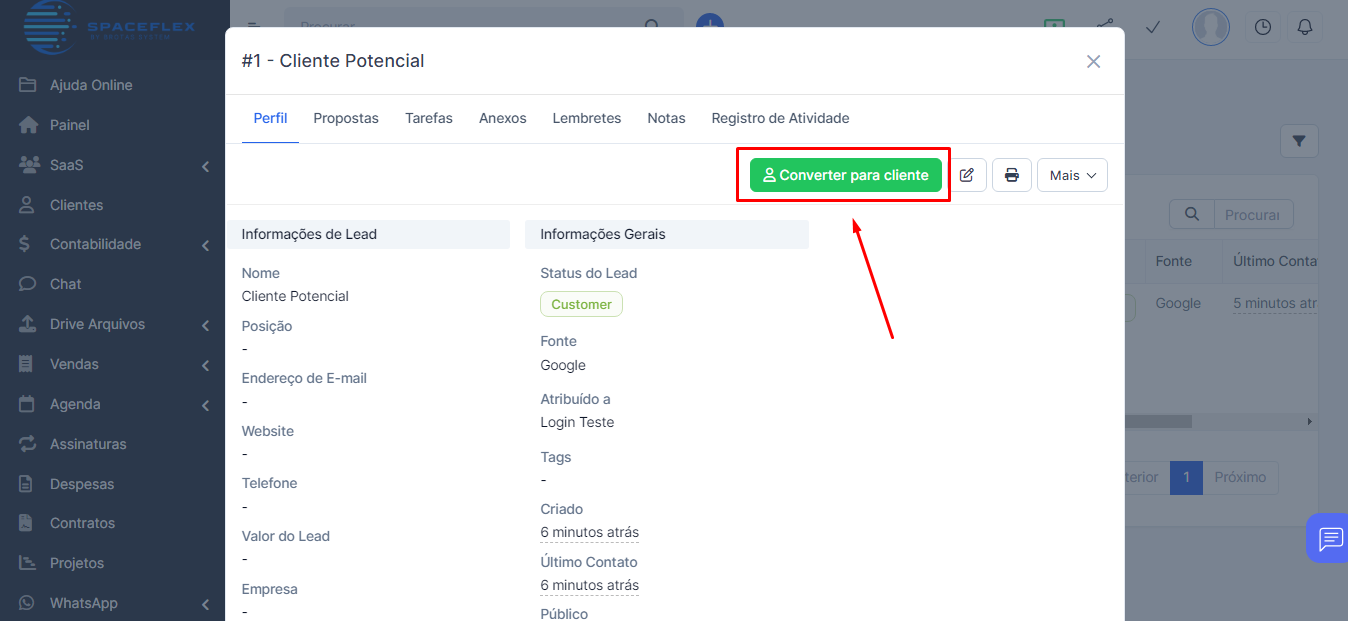 Escolha a opção “Converter para cliente” e conclua o cadastro do cliente na plataforma.