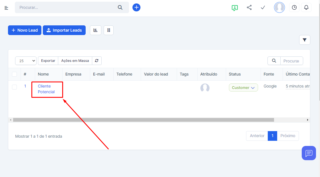 Selecione o lead que deseja atribuir e acesse o perfil do lead.