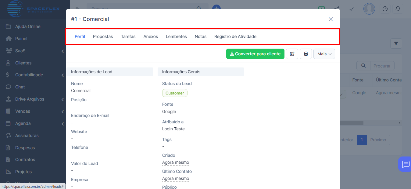 Acesse a seção de Leads do Spaceflex.
