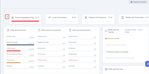 Para mover os campos do Painel, clique no ícone localizado à esquerda de cada módulo e arraste até a posição desejada.