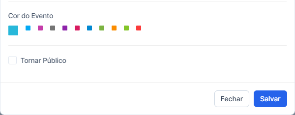 A personalização da cor do evento também é feita por essa tela. A caixa de seleção “Tornar Público” torna o evento público para os demais usuários.