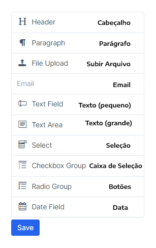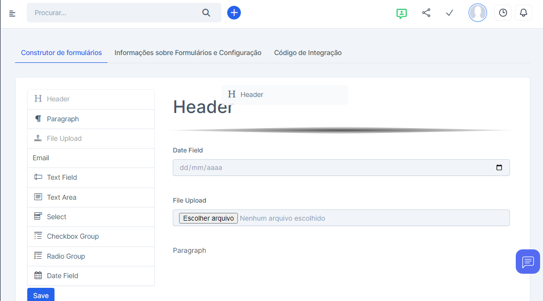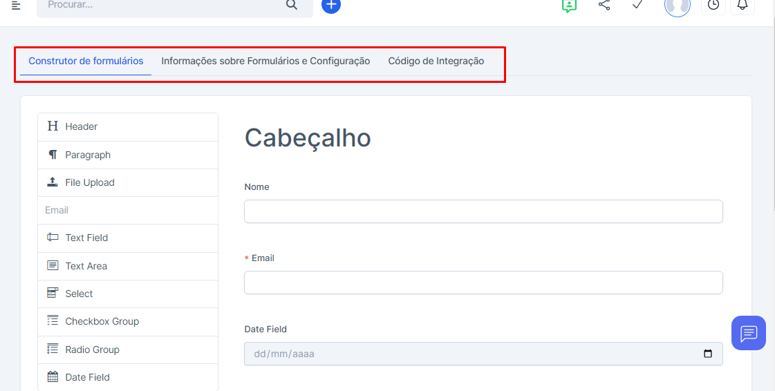 Depois de concluído a configuração do formulário, você terá acesso ao construtor de formulários.