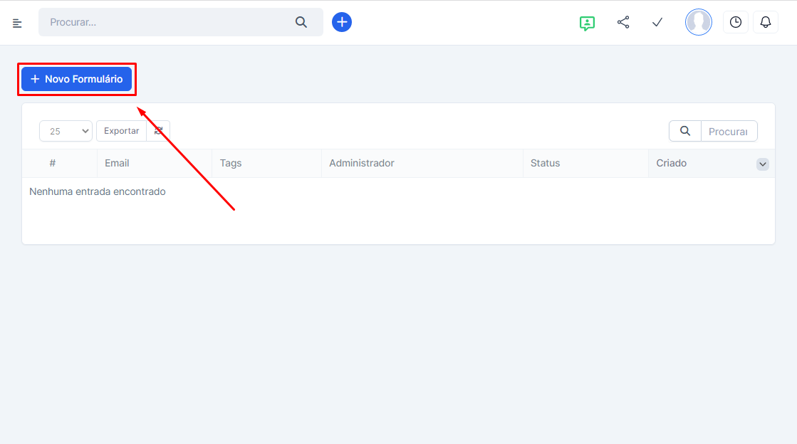Clique no botão “Novo Formulário” para iniciar a configuração.