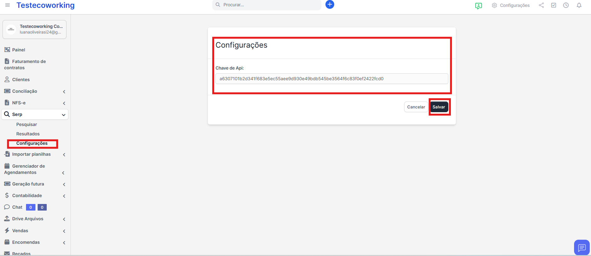 Aqui você tem acesso a configuração de chave de API de pesquisa, sugerimos que não altere a chave.