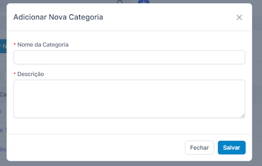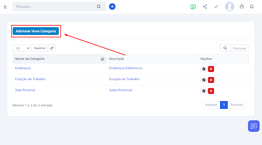 Selecione o botão “Nova Categoria” para adicionar outra categoria de serviço.