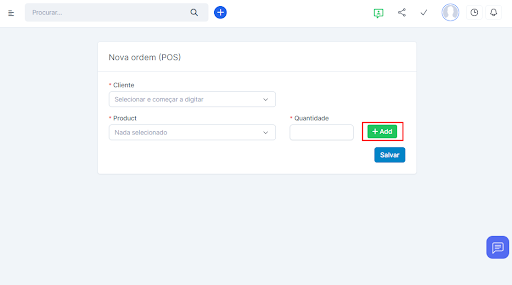 Para adicionar um novo produto, clique no botão “+ Add”.