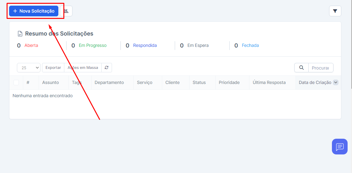 Crie uma “Nova Solicitação”.