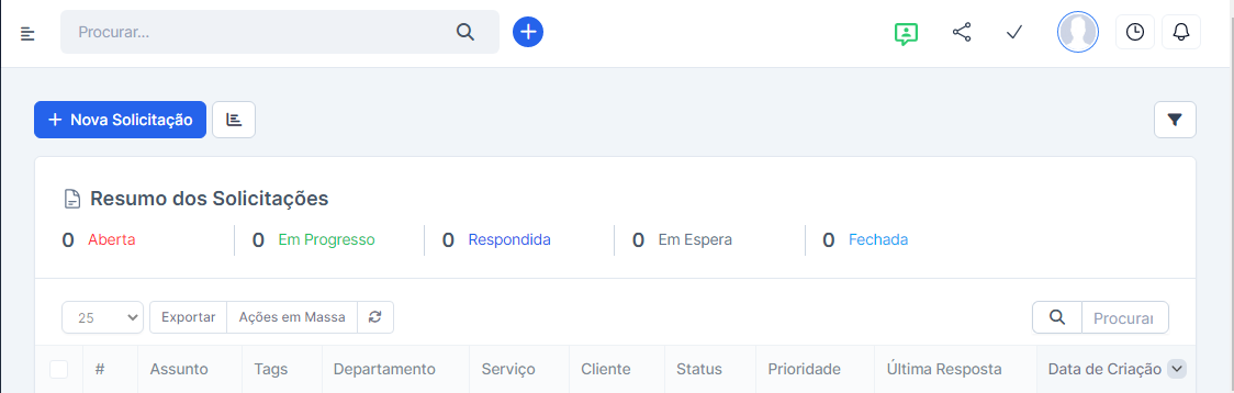 Você pode acompanhar o status da solicitação através do painel do suporte.
